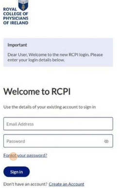 If it does not exist, you will be prompted to contact helpdesk@rcpi.ie where a member of the team will be able to help